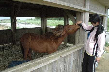 帰りに飛行機に乗るまでほんの少しながらチームメンバーに御願いしてプチ宮古観光へ繰り出しました(^^)!カメラをもってきたけどあいにくーー雨(==;)ーーー時々雲りーー。雨では海も綺麗にみえないしーー100km走ったメンバーはだらーとお疲れモードだしーー(^^;)で、なにげに「来年は私も100kmでれるかな?100kmコースおさらい巡りでポイントビューしたいなーー」と100kmコースのままにプチ観光へGO!でも私の作戦は出かけてしまえばねー運転は私だし(^0^)!!で、見てみたかった会いたかった宮古馬牧場へ可愛い(^-^)!!!!!人になれてるみたいでーー可愛い!なでなでしたりエサあげたりーーごきげんな私(^^)私の頭は「この馬おいしいかしら??」(^^;)だったのだけど馬刺はやっぱり九州の馬がいいよねー(^^;)宮古馬は小柄でちょっとおでぶちゃん(^0^)!栄養いっぱいそうだからステーキがいいかな?なんてね可愛いから見るだけで十分でーす!