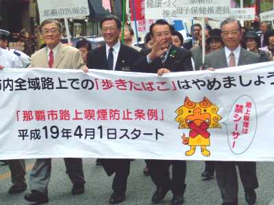 やっと念じていた願いが叶いました!国際通りでの歩き煙草を禁止にずーーーとしたかった!やっと実現する!4月1日から那覇市全域で歩きたばこ禁止の条例が施行されました先日は普及啓発の行進も那覇市長を先頭に国際通りで行われました観光でいらっしゃる皆様にも安心して楽しんでもらえる街になっていきますね!今日の新聞(琉球新報)のコラムにもこの「路上喫煙防止条例」施行について書きました!ネットでこの「南風掲載記事」を読む愛煙家の皆様にはご協力お願いします(^^)!