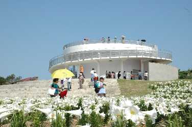 沖縄市で今「テッポウユリ」が満開ですしかも巨大畑でいったらびっくり感激!!! すごーーーーーーーーーーーーーーーい(@@)!!後ろに見える丸い建物に私も登ってみた!カップルだらけだーー(^^;)展望台からは海がすごーーい綺麗に見えたー!!一人の私でも楽しめる景色に感激!!見下ろした百合一面の白い畑の見事さ!遊歩道や休憩所もあるのでお弁当持ってきてる方もいましたよーカメラに夢中な私はそうとう変な人だったかもーー伊江島の百合祭に負けないなー見事見事したいひゃー!!