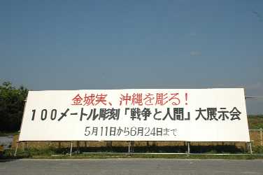 昨日からはじまりました6/24までに来沖されるかた是非ごらんください渾身の痛恨の思いが激しく伝わり絶句でした10年かかけて製作されたものだそうですなによりこの展示されている場所は戦時中に滑走路だった返還された跡地ーーーー。すぐ近くに象のオリと呼ばれる基地の跡地も見えます