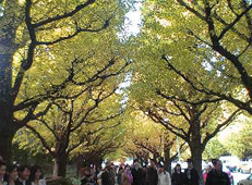 香嵐渓にあこがれてばかりではいけないので地元のスポットを探索!前々から(もう東京に来て17年も経つのに。学生時代は澁谷に通っていたのに。)行ってみたかった神宮外苑のイチョウ並木を散策することに決定。で、下調べしてみました~。神宮外苑のイチョウ並木ってこんなイメージです。いつかどこかで見た方がほとんどだと思うんですよ。しょっちゅうドラマのロケやTVコマーシャルや映画に登場してます。実家の母も周囲をぐるりと紅葉する山々に囲まれて生活しているのに、「あのイチョウ並木の紅葉が見たい!」と言い続けています。元気なウチに一度見せてあげようと思うのですが、紅葉ばかりは何ヶ月も前から予定を組むわけにはいきません。今年も遅いと言われていた割には地域によって冷え込んで、短い期間で真っ赤になったトコロもあるそうですし。今日現在は色づきはじめたところ、だそうです。今はいちょう祭りの真っ最中。太鼓、ジャズ、ラテンのステージだけでなく、東京都公認の大道芸も披露される模様。 11/12(土)~12/4(日)の土日10:00~16:30先日上野公園で大道芸の面白さに開眼した息子が、「またみたい!」とのことなのでこれも楽しみの1つです。アクセスは次の通り。 地下鉄:東京メトロ銀座線青山一丁目駅 車 :首都高速4号新宿線外苑IC ※駐車場はありませんので周辺のパーキングへ その他:がんばればJR信濃町や原宿からも歩けるかも。◆マピオン紅葉特集2005・神宮外苑http://blog.mapion.co.jp/season/05autumn/2005/10/BA609707.html歩く距離はさほどではありません。すぐ近くに地下鉄の駅がありますし、帰りのことをあまり心配しなくて良いので、絵画館でゆっくりして帰り道をまた楽しむのもイイですね。近くのおしゃれなカフェに立ち寄ればドラマの登場人物気分も味わえるかも。ただ、東京とはいえ、もう冷え込みは始まっています。どうぞ暖かくしてお出かけくださいね。--ベビー水着 機能性水着 うきうき屋店長@フットマーク ◎今週の店長オススメ:美骨&美脚を目指せ『歩行楽らくタイツ』