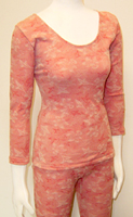 ユニチカが開発した、太陽の光を熱に変え→さらに肌から発生する熱を反射して貯える蓄熱保温素材のサーモトロン100%のインナーセット完成しました!今年は2サイズ展開、パターンもニューバージョンでのお届けです。◇上下セットで8000円(税込8400円 送料別)繊維の芯部分に炭化ジルコニウムのミクロ粒子を練り込んでいて、この【炭化ジルコニウム】は2つの大きな働きがあります。1:光エネルギーを熱エネルギーに変換する機能で主に太陽の光を熱に変換して衣服内に貯めることになります。2:波長の長い遠赤外線を反射する性質があるのです。つまりは身体から発生する熱(遠赤外線)を反射して衣服の中に閉じこめてしまうと言うわけ。ダブルの働きで暖かいというわけです。アウターに響かないようカバーパンツはひざまでの長さです。また襟ぐりを広くして襟の開いたお洋服にも対応できるようにしました。外側は赤みがかったオレンジ系、肌に当たる部分はベージュ色、見た目にもあったかい気持ちになれるのです。あした(11/18)、あったか屋にて販売開始です!※各サイズ限定5枚※ちなみに.........このインナーの企画開発は上司の浜辺さんでして、女性の味方なので女性用しか作らないそうです。 (^^;) 男性の寒がりの方ごめんなさい。※たしかにとってもとっても高価な生地なので このお値段はけっこうな冒険ですの。 普通は部分使いをするんですよ。お腹だけとか肩だけとか。--ベビー水着 機能性水着 うきうき屋店長@フットマーク ◎今週の店長オススメ:美骨&美脚を目指せ『歩行楽らくタイツ』