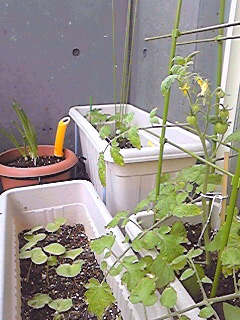 雨ですがベランダファーマーになってみました。(休日しか手入れができないので)ミニトマトは順調、葉葱も元気。綿花はまだ小さいので間引きを延期。新たにハーブ二種を植えました。今度は無事に育ってほしい…※前回のバジル失敗の教訓を活かして、工夫をしております。