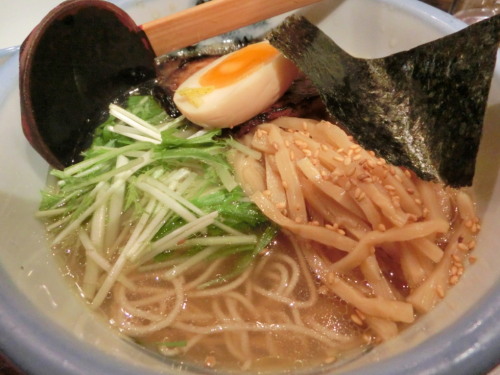朝は結構寒かったけれど、日中は意外と暖かくなった一日。夜になってもさほど気温が下がらなかったので、寒さ知らずでした。ほんとに今年の冬は暖かいです。どっかーんと寒くならないといいのですけど。そんな中、美容院のためのお出かけ。その帰りに晩御飯を食べる事にしました。明日がピッツァなどのコッテリ系の予定だったので、今日はあっさり目がいいよね。という事で決定したのが、塩ラーメンで美味しいという評判のAFURI。恵比寿が本店なのですが、思うところがあって、支店の中目黒の方で食べる事にしました。駅からすぐのところにある、こちらのお店。晩御飯にはちょっと早い時間でしたが、ほぼ満席。カウンター席で20席ぐらいしかないというのもあるかもしれません。タイミングよく席が空いていたので、そちらに。荷物置き場が壁際にちゃんとあるのが嬉しいです。小奇麗で、女性一人でも気にならないようなお店づくりになっていました。メニューはラーメンが6種類ほど、つけ麺が4種類ぐらい。それにご飯ものが2、3種類ぐらいありました。ベジ麺というビーガン対応のラーメンもなかなか美味しそうだったのですが、ここはやっぱり評判の柚子塩ラーメンにメンマ倍量にしました。そして、鶏油が淡麗というあっさりタイプか、まろ味という少しコッテリ系にするかを聞かれましたが、私はもちろん淡麗のほうをお願いしました。そうして待つ事7、8分。置かれたラーメンがこちら。柚子塩ラーメン メンマ倍増 淡麗バージョン。トッピングは半熟煮玉子の半分、炙りチャーシュー、海苔一枚、メンマ、水菜。すっきりと透明なスープに、ふわっと柚子の香りがして、なかなか美味しそう♪では、実食!! 麺のアップです。かなり細いストレート麺で、この太さは私の好み♪茹で具合も私にはちょうどよかったですが、人によっては茹でずぎ、って思うかもしれません。普通の中華麺とはちょっと違う、小麦の粒のようなものが入った面白い面でしたが、あっさりとした味わいのスープによくあっていました。スープも鶏ベースですが、お野菜なども入れているようで、かなりあっさりとした味わいです。飲んだ後にも食べやすそうですし、かなり女性的なラーメンだなあ、と思いました。トッピングも丁寧に作られていて、卵がいい感じで美味しかったです。ただ、スープがやけにぬるかった・・。早く食べさせて回転率をあげたいのか、たまたまだったのかはわかりませんが、あんまりふーふーしなくても食べられるラーメンってどうよ?ってちょっと疑問が残ってしまいました。なので、確かにそれなりに美味しいとは思いましたが、それほどの感動はなく・・。といった結果になってしまいました。支店だったのが悪かったのか・・・。微妙です。今度は本店の方へ行ってみて、評価したいと思います。
