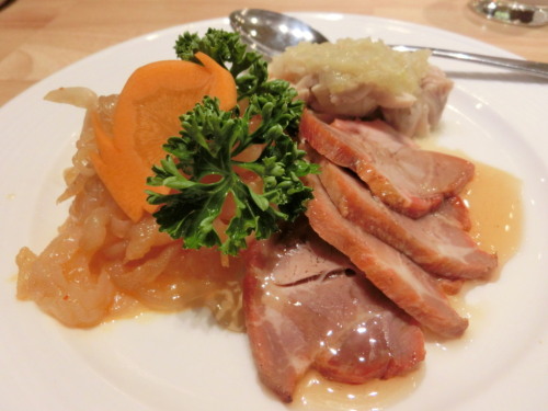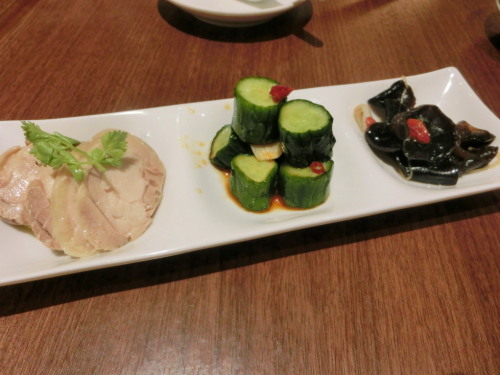 お天気も気温もちょうどよく、お出かけ日和となった一日。寒くもなく、暑くもなく、紅葉みるにもちょうどよかったですよね。こういう日がずっと続くといいのになあ。そんな中、久しぶりに中華を食べにお出掛け。向ったのは銀座に最近できた、北京烤鴨店(ペキンカォヤーテン)。その名の通り、北京ダックの専門店で、本店は中華街にあるそうです。9月ごろに銀座にNEWオープンして、ルクサでチケットが販売されていたので、お試しにピッタリと言う事で、行ってみることにしました。ビルの5、6階がこちらのお店だそうですが、受け付けは5階。エレベーターを降りるとすぐに店内になっていて、予約名を告げると、同階の席に案内してくれました。座席数は結構あって、意外とゆったりとしていました。既にコースが決まっていたので、ついているワンドリンクの選択を言われ、私はホットジャスミンティーにしました。程なくすると、前菜が運ばれてきました。三種の冷菜盛り合わせ。上から時計回りに、蒸し鶏の葱生姜ソース、炭火焼チャーシュー、上海風クラゲ。2人前が一皿にもられています。見た感じ、王道的な中華っぽくて、なかなか美味しそう♪では、実食!!食べてみると、見た目通り、こちらが想像している通りのお味です。叉焼ならこういう味、という外さない、セオリー通りのものでした。食べ慣れた味なので、これなら他のお料理も安心して食べられそうな感じでした。五目入りフカヒレスープ。ふかひれ以外にはエノキや椎茸といったキノコ類が入っていて、お醤油ベースのスープです。ふかひれもちゃんとたくさん入っていて、味付けも王道でした。フカヒレの姿煮。ちゃんと青梗菜がついていました。かなり小さいフカヒレですが、お値段考えれば出るだけ立派です。ややとろみが強めの餡ですが、こちらも定番通りの味付けで美味しかったです。北京ダック。こちらでは自分で包むタイプです。目の前でダックを切り分けてくれました。これで2人分、で一人2本。の割に、ダックがかなりたっぷりでびっくりです。こちらではお肉も食べるスタイルでした。包んだ状態です。やっぱり自分でやるとかなり不細工・・。食べてみると、皮はクレープみたいにすごく薄くて好みでした。ダックも皮がパリッとしていて、ちゃんとしていました。甜麺醤がどちらかと言うと辛め。仕上がりが緩めなので、垂れてしまって若干食べずらかったですが、それでもこのボリュームは立派で美味しかったです。海老のマヨネーズ和え。こちらも誰もが想像しているお味です。酸味がなくまろやかなソースでした。海老がプリっと、衣がサックリと揚がっていてきっちりとしていました。鮑のXO醤炒め。コロ貝のはずなのに、グレードアップされていました。私は苦手なのであまり食べませんでしたが、お野菜がしゃっきりとしていて、味付けも濃すぎずちょうどよかったです。酢豚。パイナップル入りの甘いタイプです。私は苦手なので一つだけ食べました。でも、豚がサックリと揚がっていて、酸味もなく、お子様向けの味付けなので喜びそうでした。小龍包。それほど熱々ではなかったですが、スープがたっぷり入っていて、本格的でした。焼売。こちらのシュウマイは柔らかめ。お肉たっぷりでかなりボリューミーでした。陳麻婆豆腐。石焼の中に入っての登場だったので、アッツアツ!ホワジャオに唐辛子が結構入っていて、パンチの効いた麻婆豆腐で美味しかったです。でもツレは辛すぎてほとんど食べられずだし、私もお腹がいっぱいになってしまって、あまり食べられず、無念・・・。白いご飯欲しかった。牛肉入りチャーハン。搾菜の炒飯のはずが、こちらもグレードアップしていました。パラパラ系の炒飯で、味付けもちょうどよく、お腹に余裕があったら、もっと食べたかったです。デザートはマンゴープリン。マンゴー感はちょっと弱め。固めのしあがりです。でも、まあ、こんなものかな。以上たっぷりとお料理が出てきて、これで一人アンダー3000円とは安すぎです。驚異のCP。しかもこのお値段なのに、お味はちゃんとしていて、安かろう悪かろうでないところがすごく気に入りました。こちらのお店は今回のようなコース料理もありますが、食べ放題もやっています。そちらもリーズナブルなのに内容がかなり充実していたので、今度は食べ放題を利用しに再訪したいと思います。さて、明日からまた一週間。何を食べようかな?
