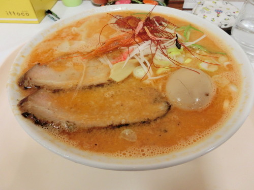 寒かったけど、いいお天気で、クリスマスイブ直前の街はすごい人出だった一日。煌びやかな街並みは楽しいけど、あまりの人の多さで見る気力も失せました。明日の方がゆっくり見られるかも。そんな中、物産展のラーメンが美味しそうだったので、それを食べにお出かけ。向かったのは松坂屋上野店。こちらで17日から年内最後の北海道物産展を開催しています。そこに、海老のラーメンが出ていたので、これは食べてみたい!!と思って、晩御飯はそれを食べることにしました。銀座で用事を済ませた後、上野へ移動。松坂屋上野店はリニューアルオープン後初めてです。行こうと思いながら、特に用事もなかったので、ずっと未訪のままでした。ぱぱっとパトロールしてみると、意外と面白いお店も出ていたので、今度ゆっくり偵察にこようと思います。時間があったので、ゆっくりとエスカレーターに乗って移動。催事場に到着すると、想像していたよりもお客さんは少なかったです。お昼がピークだったのかも。さらりと会場内をパトロールした後、イートインのラーメン屋さんの前に着きました。かなり晩御飯には早い気もしたのですが、空いていたので食べてしまうことにしました。出店していたラーメン屋さんは2店舗。私はもちろん海老の全部盛りで、味噌、醤油、塩と選べたので塩を。ツレは味噌の叉焼のラーメンをオーダーしました。そうして待つ事6、7分。運ばれてきたラーメンがこちら。海老そばエースのジョー スペシャル海老全員集合 しお。叉焼2枚、味玉、ワンタンの皮×2、海老あげ団子×2、甘エビの唐揚げ、メンマ、葱、針唐辛子。塩にしたから透明なスープを想像していたけど、白濁のスープが出てきて、びっくりしたけど、なかなか美味しそう♪では、実食!! 麺のアップです。麺はやや細麺タイプのちぢれ麺。ストレートの方が個人的には好きですが、この方がスープが麺によく絡んで、このラーメンにはあうかなと思いました。スープは塩といっても白濁で、豚骨ラーメンのよう。海老の風味はしますが、そこまで強烈ではなかったです。豚骨ラーメンにちょっと海老風味が加わったぐらい。「どんだけ、海老?!」っていうぐらいの方が好きなので、もう少し海老の味わいをしっかりしてほしかったです。あと、やっぱりすっきりクリアな塩のスープの方が海老には合うような気がしました。叉焼はとても柔らかで、見た目よりも脂っぽくなく食べやすかったです。海老のすり身を揚げたお団子が、さつま揚げみたいでこれはよかった♪ワンタンの皮だけじゃなく、中身も入っていたらなあってちょっと思いました。味玉はいい半熟加減で美味しかったです。こちらはツレがオーダーした、らーめん橙ヤの炭火焼ちゃーしゅー 橙みそ。たっぷり叉焼が5枚いり。少しもらいましたが、お味噌のブレンドの仕方がすごくよくて、美味しい味噌ラーメンでした。物産展の狭い厨房だから仕方がないのかもしれませんが、スープがややぬるかったのがすごく残念。もうちょっとあつあつだともっと美味しかったのになあと思いました。でも、わざわざ北海道まで行かなくても食べられるというのが物産展のいいところ。また美味しそうなラーメンがあったら、食べに行こうと思います。