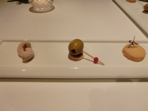朝は冷え込んでいたけれど、日中はこの時期にしては暖かさを感じた一日。1週間ごとに気温が変わるので、体が辛いですよね。今週は暖かいそうなので、クリスマスにはいいのかな。そんな中、一足早いクリスマスディナーにお出掛け。向ったのはパレスホテル東京内にある、フレンチレストランのCROWN。ここの所クリスマスディナーは中華が多かったので、今年は久しぶりにフレンチで行こう、という事になりました。で、まだ行ったことのないこちらを利用してみることにしました。パレスホテルは、旧館時代には何度か利用していましたが、新館になってからは2度目ほどです。新旧通してこちらのフレンチは初めてなので、どんなお料理が出てくるのかすごく楽しみに行ってきました。少し早目についてしまいましたが、店内に案内していただけました。30から40人ほどの収容人数なので、それほど大きくはないですが、ホテルのフレンチらしい落ち着いた雰囲気になっていました。窓際の夜景が綺麗に見える席に案内してくれて、まずはドリンクを勧められました。飲めないので、今回はフレッシュのグレープフルーツに。その後、お料理のメニューを持ってきてくれて、それと一緒におつまみ的なものを出してくれました。左から、シナモン風味のカシューナッツ、オリーブの実、チーズのサブレ。一口サイズのものです。私はチーズのサブレだけ食べました。サブレですが、しっとりとした焼き上がりで、チーズの風味がしっかりとしていて美味しかったです。メニューの相談をして、私はコース内容を変更。ツレはメニュー通りのものに決めてオーダーを終えました。程なくすると、プレアミューズの登場です。プレアミューズは3種類いずれも一口か二口ほどの小さいものでした。こちらはニンジンに見立てたもの。マスタードのムースを人参のゼリーで覆ったもの。人参の甘味とマスタードのピリッとした辛さがよくあっていました。こちらはかぼちゃのパンナコッタ。カボチャの甘味が強く、ピュレもたっぷりだったので、南瓜感全開です。小さいけど、満足感の高いものでした。鴨のパテ いちぢくのコンポート添え。私は苦手なのでパスしました。鴨の味がしっかりとしていて美味しかったそうです。何れもかなり美味しいので、この後のお料理が期待できそうな感じでした。パン。手前がブリオッシュで奥がチャパタ。キューブ型のブリオッシュはバターがたっぷりと入っている、かなりリッチな味わいです。チャパタは結構ハードですが、シンプルな味わい。どちらも下の売店で販売されているパンよりも断然美味しかったです。そして、アントレの登場!ベルギー産フレッシュオシェトラキャヴィアポテトのムースリーヌを真鯛の燻製香で67℃で火入れした地鶏卵とクレソンのジュ。追加料金でこちらにしました。想像していたものとは全く違うお姿ですが、キャビアがいっぱい乗っていて、激しく美味しそう♪では、実食!!色々と難しい説明書きがされていますが、単純に解釈すれば、マッシュポテトの上に半熟玉子とキャビアを載せたもの。崩して食べてくださいと言われたので、崩して混ぜて食べました。丁寧につぶして裏ごしをしたポテトのムースリームヌは、バターも加わってリッチな味わい。クレソンの苦みを全く感じさせないソースとよく合っていました。卵の黄身がよいソースとなって、間違いない美味しさです。たっぷりのキャビアが豪華さも演出していて、贅沢な一品でした。帆立貝とトリュフのベーコン巻き セロリラブラム酒の香るエスプーマ。ポワレした帆立にベーコンを巻いて、セロリラブの角切りの上にそれを置き、そこに帆立の紐から取った出汁を使ったソースをエスプーマ状にしたものが敷かれていました。ホタテの間にはトリュフ、トップには黒胡椒の入ったラングドシャがのっていました。まあ、手が込んでいてすごい!でも、お味は奇をてらったものではなく、安心して食べられる王道的な美味しさです。ホタテとベーコンの組み合わせは間違いないですし、ソースもホタテの出汁からなので、更に帆立の旨味が加わっていて美味しかったです。途中で、パンのおかわりとして、パンワゴンが登場!!これは嬉しすぎる!!あれこれ悩みましたが、バゲットとアオサ海苔のパンをチョイス。バゲットはクラストがバリッとしていてかなり美味しいです。アオサ海苔はチャパタ生地で少しもっちりとしたものでしたが、ほのかに香るアオサの香りが魚介系のお料理とよくあって、美味しかったです。そしてメイン!!スコットランド産オマールブルー:爪とレッドアンディーブのサラダパッションフルーツと共に酸味の利いたリコッタチーズのクリーム クーのロティサフラン風味腕肉と色々な茸のラビオリお花とハーブの可愛いタルティーヌジュドオマールブルー。長いですねえ(笑)コースのデフォルトでは、違ったオマールの調理方法と牛フィレ肉のポワレが入っているのですが、私はフ