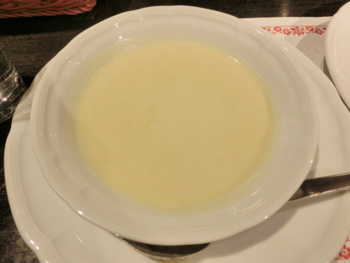 本日のお料理教室では、いつも通り2品作ってきました。一品目。栗とセロリのスープ。薄切りにした玉ねぎとセロリをバターでいためて、そこにチキンブイヨンと薄切りにした栗を入れて、柔らかくなるまで煮込みます。柔らかくなったら、ミキサーにかけて、生クリーム、バターモンテ、塩で味を整えました。栗の風味は弱いですが、優しい味わいでした。セロリが主張してなかったのにはびっくりです。余った栗の甘露煮を使ってもいいとのことだったので、また作ってみたいです。二品目。鱈のムニエル グルノーブル風。グルノーブルはみじん切りにしたシャンピニオンを炒めて水分を飛ばして、溶かしバターとパン粉を混ぜ合わせたところにこのシャンピニオンを入れて、レモン汁とケッパーを加えたもの。きのこのパテみたいな感じでした。淡白な味わいの鱈と香り良いシャンピニオンがよくあっていて美味しかったです。みじん切りが大変だったけれど、ミキサーかければ簡単だし、他のお魚にも合いそうなのでまたこちらも作ってみようと思います。