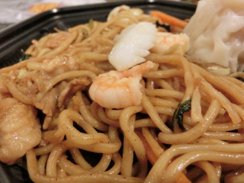 昨日よりも更に気温があがって、30分も日向にいたらマジで死ぬんじゃないかと思われた一日。吹く風も熱風で、ドライサウナに入っているよう。夏は暑いのは仕方ないけど、もうちょっと手加減してほしいなあ。そんな中、面白そうな企画があったので、それをパトロールしにお出かけ。向かったのは日本橋三越本店。こちらで今日から「食品銘店会大感謝祭」なるイベントが開催されて、いろんなお店とのコラボ商品が販売されます。DMを見てなかなか美味しそうなものが揃っていたので、行ってみることにしました。開店間もなくにお店に到着。途中寄り道しながら、地下の催事場に行きました。初日とあって、商品の陳列や手順が間々ならない様子で、ちょっとゴタゴタ、バタバタしていました。DMでチェックしていたお店を物色しながらパトロール開始。写真でも美味しそうでしたが、実物も負けじと美味しそうです。折角なので、ランチ&デザートはここで済ませてしまうことにしました。見ているとどれも魅力的なのですごく悩みます。でも、ボリュームも結構あって、なかなか決まりません。食べたいけど、ちょっと量が多い・・・。と悩んで、ダメもとで交渉開始!すると、快く応じてくれたので、めでたく買って食べられることになりました。すぐ近くにテーブルとイスが用意されていて、そこで食べることができます。ちょうど出来立てを包んでくれたお目当てのものがこちら。鈴木製麺×四陸のコラボ商品、鈴木製麺中華麺使用 上海醤油焼きそば。「麺の専門店自慢の中華麺を香ばしい上海風焼きそばでお楽しみいただけます」との事。鈴木製麺の中華麺に四陸オリジナルのソースで味付けした焼きそばです。デフォルトではこの倍以上の量になります。具は、人参、小松菜?、豚肉、海老、烏賊と盛りだくさん。焼きそばらしいいい香りがして、とっても美味しそう♪では、実食!!麺のアップです。中太麺で、ややもちっとした麺。つるんとした食感ですが、ソースはしっかりと絡んでいました。具材の品数は多いですが、具の量は少なく、添え物的な感じ。ほんとに麺がメインって感じです。オイスターソースで味付けされていて、お祭りの焼きそばのような、ジャンクなソース焼きそばとは味こそ違いますが、鉄板で焼かれているので、ややそれに近い香ばしさがありました。たまにはこういう焼きそばもいいですね。まだ出来立てだったし、美味しかったです。バラで売ってもらった、神戸大焼売 蟹。これは通常商品ですが、蟹焼売が好きなので食べてみました。中は蟹いりの魚のすり身。お肉は入っていません。プリッとしていて、大ぶりで食べごたえがあって、一個で十分でした。麺もコシがあったし、味付けもちょうどよく、なかなか美味しい焼きそばでした。こういう企画でないと食べられないコラボ商品なので、食べられてよかったです。