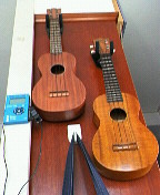 ここのところ、急に寒くなったせいで一昨日くらいから頭が痛く、今日はついにバタンQ(←死語!?)。朝食の支度をした後、少し寝ていました。ちょっと調子がよくなったので少しウウレレでも弾こうかな。。。ウクレレも、家での練習はペリドットくんメインで弾いていますが、なかやんも台所仕様にしてみました。台所仕様といっても調理に使用するわけではなく、ちょっとした台所仕事の合い間にポロロ~ンと弾くのに、台所の端っこに置いているのですが、以前はおかやんと出戻りなかやん2号でしたが↓、私は決して器用という訳ではないので、あまり色々なウクレレに触れずに、フレット間の幅をペリドットくんに合わせ、その感覚に慣れる為にも、練習用はなるべくペリドットくん以外では、コンサートサイズのなかやんで弾くようにしようと思ったのですが、今まで、なかやんではジャカジャカ弾く事はほとんどなく、最近、ペリドットくんでは当たり前のようにジャカジャカ弾いてるのと同じ様になかやんで弾いてみたら、なんと、人差し指の爪がボロボロに・・・気を取り直して爪を磨きなおし、再度ジャカジャカ・・・またしてもボロボロに・・・また磨きなおして・・・・と、・・・人差し指の爪があっという間に短くなってしまった。。。ん~、ゆっくり弾いてあたるところを見るとフレットの処理のあまさのせいか?それともネックの角にあたるせいか?のどちらかのような気がしますが・・・弾き方に原因があるなら、ペリドットくんでもなるはずなのですが、もしやウクレレによっても弾く角度を変えないといけないとか?原因は?ですが、なかやんもなかなかいい音でお気に入りのレレな訳で、とりあえず今後もしばらくソロ仕様になりそう。。。爪伸ばしてる方でボロボロになった経験ある方、何のせいでどういう対策すればよいのか、宜しければ教えて下さいませm(_ _)m