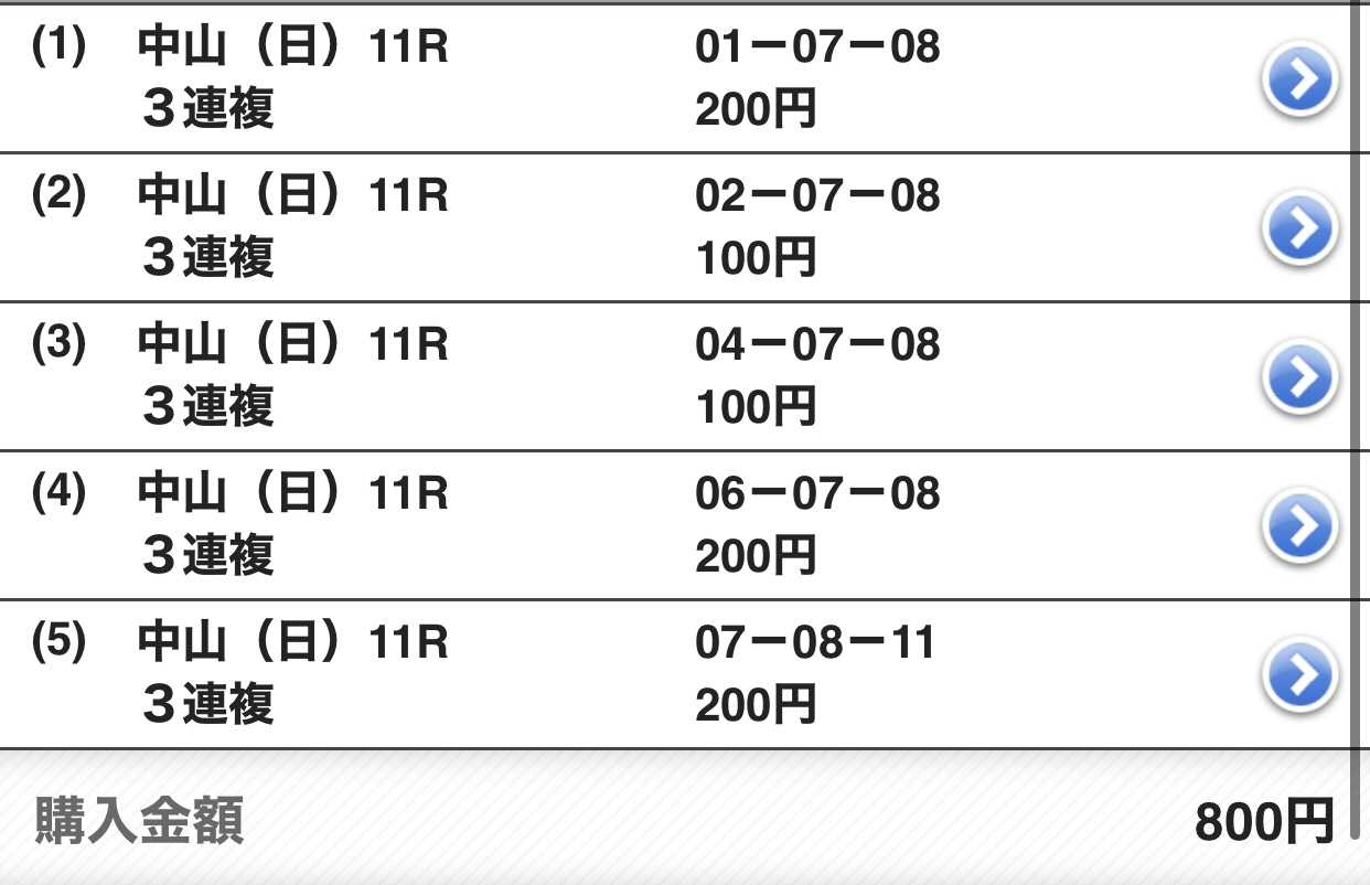 そんな中、わたくしの当日の買い目はこんな感じでした。