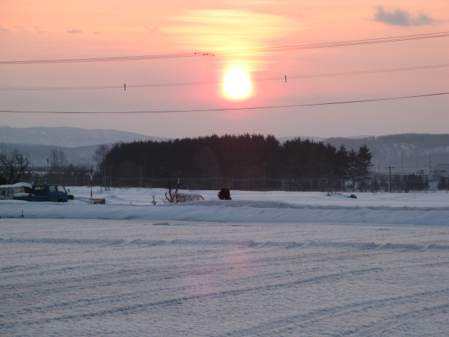 5日目です 二丁目コース今日はかみさんも一緒です気温は低いがすがすがしい気持ちのいい朝です空気がおいしいです 75.2k 変わらず 24.2% 昨日より1.2%減ウオーキングコースでの朝日ですまだこんなにも雪があります