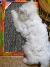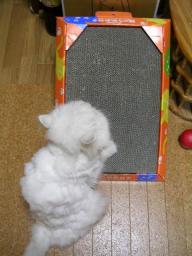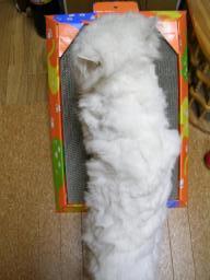 『一人でできるもん』と市販の爪研ぎを使っての“爪研ぎ”がとっても気に入った梅吉。『わぁいわぁい♪つっめとぎぃ♪』『研いで、研いで♪』5分後 “???”10分後 “爆睡”30分後 “邪魔なんですけど”☆★寝心地も良いようです☆★目覚める前から、梅吉が体の上を歩いている。一度目が合うと飛び跳ねだした。ご飯の催促だ。体の上でジャンプされると寝ているわけには行かない。玄関に行くと、梅吉がトイレをした後があった。食欲は出ていた。そして、10分後、8年間で最も大きくて立派なトイレをした。あまりにも立派だった。こんなに詰まっていたのか。びっくりした私と、出した梅吉と、野次馬小吉でトイレを囲んでしばらく眺めていた。梅吉もびっくりしたのか?でも、毛玉も出ていたので安心した。その後は、底なし胃袋だった。傍に居なくても、一人で全部食べてくれた♪最近食事の量が増えていたので、便の量も増えていたのだ。がんばりすぎたのか、お尻を見ると“まっかっか”だった。