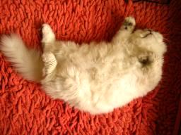 我が家の健康チェックは、お鼻とお尻だ。まずは鼻キッス♪で鼻の湿り具合の確認!して、次にお尻チェック(^^;)後ろから両足の付け根を持ち、持ち上げて両手の親指で毛と皮膚を開いてチェック!小吉は体調が悪いとお尻にしまりがない。汚れているときもある。梅吉はいつも綺麗だが。。朝起きた時と晩御飯の前に行うのだが、たまに忘れてご飯をあげてしまうことがある。そういう時は、食べてる最中にチェック(^^;)足を持ってグィッと持ち上げても気にせずご飯を食べる梅吉と小吉。恐るべし!小吉のカサカサは相変わらず、と言うより毛を刈った分、かき易くなりひどくなった(^^;)もう少し様子を見よう。今週はよく寝た!毎日6時間寝た!爽快な気分で仕事ができ、余った時間に書類の整理もしてしまった ^^でも、掃除洗濯は待ってくれない。どこで時間を作ったかと言うと、梅吉の発情期もあり、遊ばなくて良かったからだ。今日は久々にビールでも飲みながら遊んでもらおう。梅吉、発情期終わってるかな? 梅吉(♀)発情中!