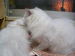 吐く息が白くなり、町がイルミネーションで輝く頃。ビル空調がぜんぜん効かず、振るえながら仕事をする毎日。ペンを持つ手が震えている・・・玄関でドタンバタンとすごい音がした。小吉と見に行くと、箱を縦にして梅吉が入っていた。 どうやって向きを変えたのだろう・・・床がすべるので、私の足に手を置いて毛繕いしている小吉なんて奴だ!初めて試みる急ぎの仕事が立て続けに入り、段取りもできず目処も付かず、頭が仕事でいっぱいだった数日間。やっと目処が付きかけたら、パソコンからカラープリンタが消えていた。プリンタの追加をしようと思ったら、ドライバが無い!仕方なく、CDからインストールするとエラーがかかった。これでは仕事ができない。他にわかる人はいないし、あまり言えない・・・上司の雷を頭に浮かべながら、別の出向中の上司にコソッと連絡。連日、終電帰宅にもかかわらず、翌日、何とか調整をつけ事務所に寄ってくれた。なぜかしら、10分で完了。(私の苦労っていったい・・・)機嫌よく家に帰り、上司が出張中をいいことに少しゆっくり出社(勿論、定時以前)すると、カラープリンタにデータが行かない。なぜ?昨日出力できたのに・・・他のパソコンからも印刷できない!血の気がひいた・・・“そういえば、昨日、プリンタのプロコトルっていう所触ったような・・・”確認すると案の定、変更されていた。で、無事出力(^0^)どうやら、明日の提出に間に合いそうだ。その時、出向中の上司から電話。“昨日はありがとうございました、順調に動いています(^^)”(ちょっと嘘)『よかった、自分のことやから、“朝立ち上げたら動きません”とか言いそうやったから電話してみた』と言われた・・・よくお分かりで ^^;今日の星占いが“ハプニングで予定変更”だったのを思い出した。普段気にしないが、ちょっと笑ってしまった梅之輔だった。数日、遅い帰宅の上遊んであげていないので、帰るとおもちゃは散らかり、爪研ぎはひっくり返り、タオルは床に散乱し『ご飯!』『トイレ』『抱っこ』『おんも』とまるでにぎやかな保育園のようだった。座ったら、ベッドと壁の隙間にお尻がはまった梅吉必死にもがいているが・・・結局・・・情けない・・・ ということで、同じものを3つまとめて買い、色違いを出したら、使ってくれない・・・・ なぜ?では最後に耳掃除の光景を!イヤーローション入れて モミモミモミ小吉 梅吉