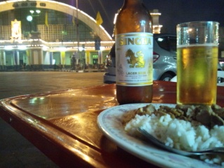 フアランポーン駅前で食事。大好きなカーオカームーとパックフンファイデーン。