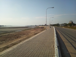 ラオスのヴィエンチャンに来た。メコン川沿いは、激変!一見きれいに見えるが、この無機質な感じは、なんやろ??川原も無駄に広井が、まだ何か造るんか?