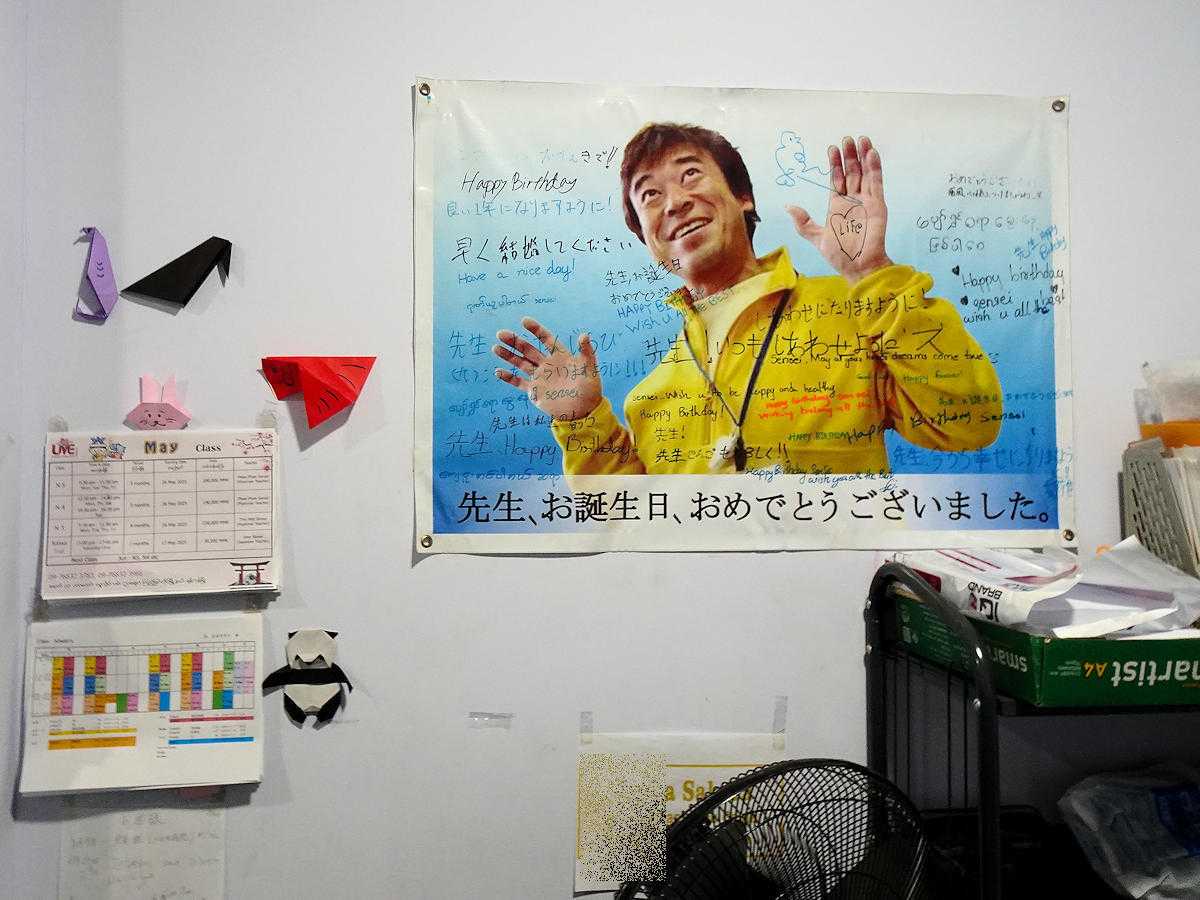 その時の寄せ書きは,今は私の学校に掲示しています。