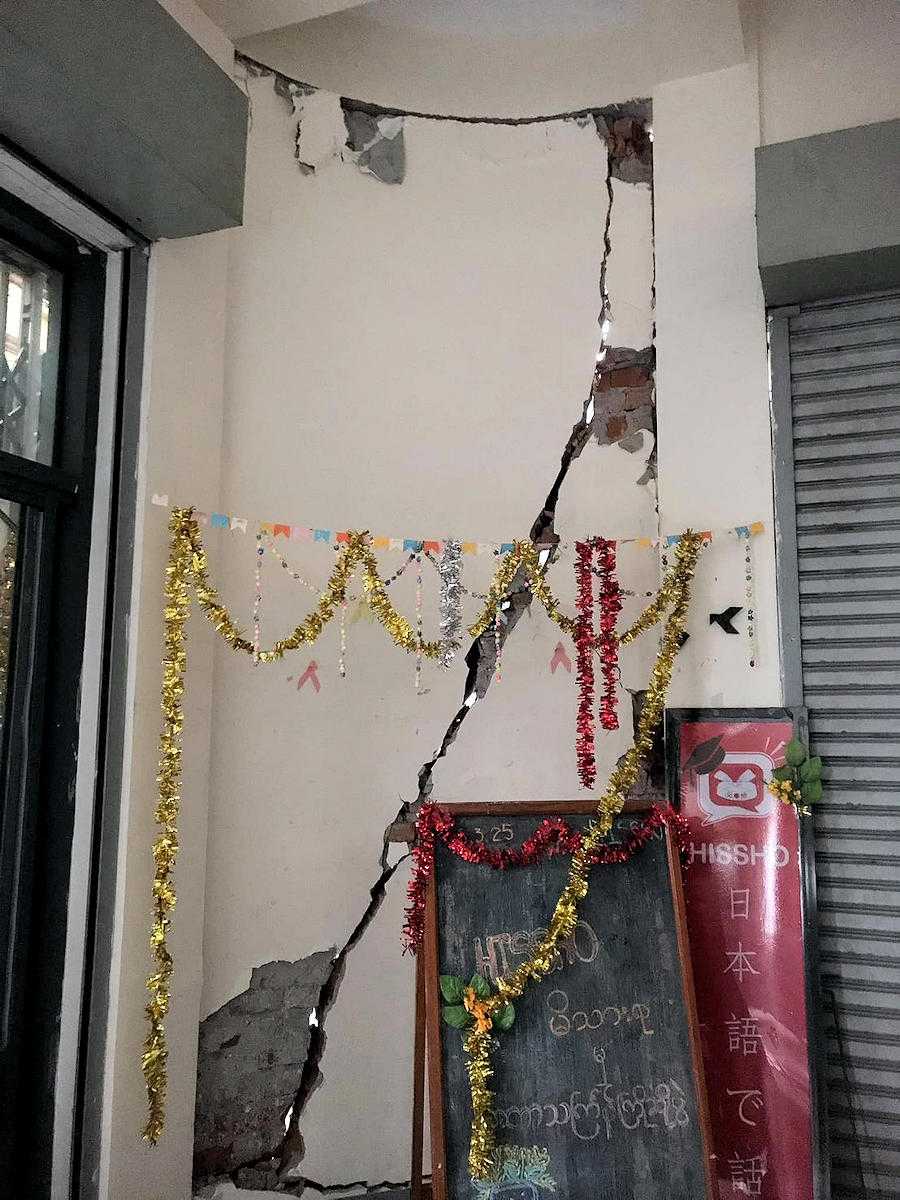 マンダレーにある日本語学校の教室は,被災して倒壊の恐れありで使えなくなってしまいました…