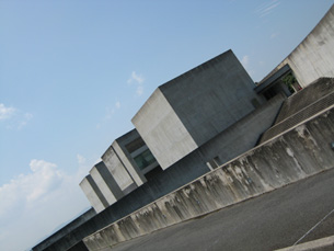 鳥取まで行ったついでというか、コッチが本命だったというか、以前からずっと行きたかった「植田正治写真美術館」へ行ってきました。戦後すぐに、演出写真を製作した驚くべき写真家なんです。絶対非演出のリアリズム写真の対極にあり、当時はお芸術写真として批判を受けました。 それでも一貫した個性的な演出は鳥取砂丘を舞台とした名作「砂丘シリーズ」を生み出しました。晩年は福山雅治さんのCDジャケット撮影をするなどし、最後まで活躍の場を広げていきました。その植田さんの作品を展示しているのが、大山を一番キレイに見れる場所にあります。逆さ大山が水に移り、コンクリートの打ちっ放しの建物がフレームのように写り、彼が演出した大山が日本一キレイな山としてその姿を見せてくれます。
