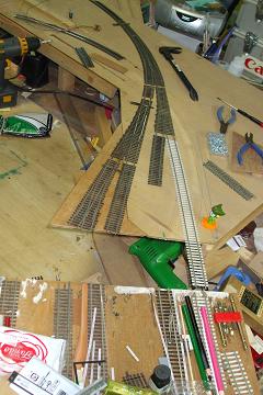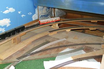 メインの駅の北側のポイントの設置が終わりました。とりあえずこんな感じで。見えにくい場所なんで手抜きします。特にバラストを撒くと再利用し辛くなりますから。 つぎは写真左側の周回部分を弄ります。複雑に立体交差する上勾配があるので、慎重に作らないとパンタグラフが当たったり、登らなかったら困りますからね。まずは旧レイアウトの解体です。ランク大丈夫かなぁ忘れずに押してくださいね警告:宣伝目的のURLやメルアドの書き込み・トラックバックは一切禁止します。なお、トラックバックは当方の確認・操作がないと表示されません。ヾ(▼へ▼)〃