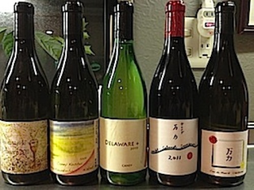 日本のワインが先ほど届きました。届いたワインはCaney Wine5種類。左から ヴィノ・ダ・マンリキ デラウェア 2011 甲州祝村 2009 デラウェア+2010 カネイ ヴィノ・ダ・万力 メルロ・カベルネ 2011 ヴィノ・ダ・万力 シャルドネ 2008