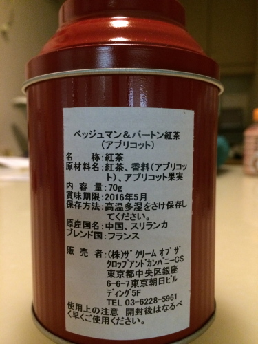 最近は夕食後に紅茶を楽しんでいます。ベッジュマン&バートン紅茶の『アプリコット』をいれています。