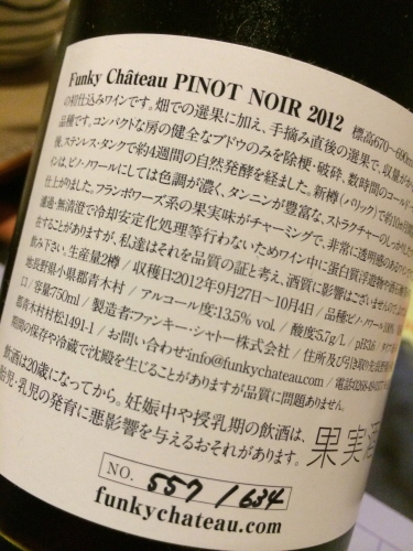 ファンキー・シャトーのピノ・ノワール2012が届きました。飲み頃はまだ先との事ですからしばらくセラーにてお休み。