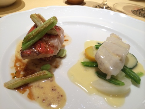 我が家2名の誕生月と言う事で、ラ・ミラベル@可児市にてディナーしてきました。お肉料理のアグー豚も美味しかったのですが、今回の金目鯛はとろぷり甘旨の美味しさ。開けたワインはユドロ・バイエのレ・クラ2011。noir-funさんの経験通り、甘い味わいのワインで今でもスイスイ進んでしまいます。この甘さが金目鯛の甘さと見事なマリアージュをみせてくれました。