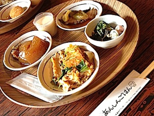 散策中にふらりと入ったあんしんごはん@高岡市。お惣菜がずらりとならぶ店内で好きな物をチョイス。ご近所さんらしき人たちがテイクアウトで利用してました。