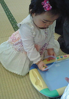 娘も1歳3カ月を迎え、おしゃべりが色々でてきました今は私のことを「マーマ」旦那さまを「パパ」と呼んでる娘ですが、もうちょっと大きくなったら呼び名を変えたいなーと思っている今日この頃。旦那さまは「おとうちゃん」って呼ばれたいみたい最近じゃ少ない呼び方だし、新鮮でいいかな?って気もするけど・・・何だか自分が母親になったことが未だに不思議な私は名前で呼んでもらおうかなっと考えたりもします。(夫には激しく拒否されましたがw)やっぱ「パパ、ママ」と呼ばせるご家庭が多いのかな。さて、日曜日は義弟の娘ちゃん(5カ月)とたみ娘の合同ひなまつりパーティーを開いてもらいましたたみ娘はいとこお兄ちゃんのおもちゃ?をいたずらして楽しそう。sourisのミルキースーツ(サイズ90)を着用です。ガーゼ素材でふんわり女の子らしくとてもかわいい5カ月の娘ちゃんにも同じ物をプレゼントしました夏にはおソロで着れるかな5カ月と1歳3カ月を並べてみましたよ~来年には仲よく遊んでくれるかしら【2010・春】 souris ガーゼダンガリーミルキースーツ(花総柄×リボンステッチ切替)このミルキースーツ、ほんとかわいいです。旦那さまのお友達ベビーにも同じ服をプレゼント。3人おソロなんだよな~。3人が揃うことはないだろうけど(笑)またまた買い物熱が上昇してじゃんじゃん買い物してたら春服も結構揃ってきました。旦那は呆れてたけどもう春服は買いませんので許してね~