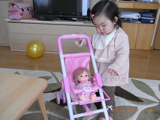 放置しすぎましたが皆さんお元気でしょうか?今日は暖かいですが、4月なのに雪が降ったり変な天気が続いてますね。さて、雪が降った土曜日、お友達家に遊びにいきました。おもちゃがいーぱいな家で娘は初めるちゃんのお世話楽しそうにお世話してるね~天気が良くなった午後はお友達の砂場着を借りて近所の公園へまだ雪が残ってる砂場で楽しそうに遊んでました歩けるようになり遊びの幅も広がってきました。暖かくなってきたし、砂場着と長靴と砂場セットを買わなきゃなあ。そしてその日、服が安いよ~とお友達ママに誘われSCへ。買ったのはこちら定価よりもかなーり安く買えて大満足買う予定がないのに買ってしまいましたが・・・w
