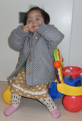 書きたいことはいっぱいあるのに中々更新できず。この冬のアウターはマトリョーシカの中綿ジャケットだけと決めてて、前からBREEZEに入荷したら取り置きのお願いをしてました一昨日に入荷済みの連絡があったため、昨日は朝からはりきって取りに行ってきましたよー。黒とグレーで悩んでグレーを購入私の服だったら迷わず黒なんだけどねw早速、娘に着せてみましたマトリョちゃんが写ってませんね82センチ 11キロ サイズは90です。全身プチジャムコーデでしたw