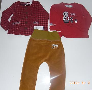 そろそろBREEZEにもプチジャムの新作が入荷してるかなーと本日、行って参りました。娘が店内で暴れて、じっくり見れなかったのですがいくつか購入してきましたよ。全てベビーサイズで作りが90まで。まだまだベビーで良かった(笑)パンツは3色あって、全色買いたいくらいのかわいさでした後は鳥さんのカーディガン。こちらはブルーと2色ありました。画像が悪くて残念ですが、ポケットがかわい~マトリョTも買ってみました~まだまだ暑いので着るのは先なんですが、無理やり着せてみた(笑)あちい、あちいとかなり嫌がっていたのでこんなショットですごめんよー、娘wあと欲しいもの色で迷ってます。BREEZEにはグリーンとブラウンのみでした。どれにしようかなあ~
