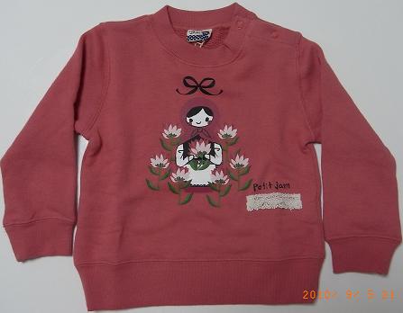 実は先日のBREEZEでは、もう一つ買ってました何だか今日は娘も早寝しちゃったので、お披露目しちゃおうかと思います。3柄トレーナーのピンクのマトリョーシカにやられました。でも・・・セールまで待つべきだったかな。。。そういえば、1歳(もうすぐ)9カ月の娘は最近ピンク好きなんです。ジュースやお菓子でもピンクのパッケージの物が欲しいらしく他の色の物を取ると首を振って「ピンク~~」なんて言ってます。最近のお気に入りはクーの飲むゼリー何種類かあるのに絶対ピンク(もも味)しか受け付けません(笑)皆さんのお子さんも好きな色、あるのかな?