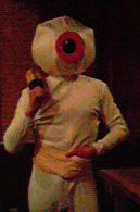不景気でんなぁミナミのはずれで飲食屋やってると、人・金の流れと多少が露骨にわかります。そんな感じなんで、ウチもコスト削減のため来週から夜勤決定のうのてんです(号泣)。こんばんは。ま、陰気くさいことばっかり言っててもしゃーないんで気分転換もかねて、ウチの常連さんが経営しているバーのハロウィンパーティーに出場してきました。初コスプレです。目玉おやじ♪頭部の材料は、ザル・包装用紙・チョウチン。すべて100円ショップで購入。しめて500円なり。それに、全身タイツと腹巻をドンキで買って完成。簡単でしょ(笑)なんと、この「目玉親父キット」がヒッパリだこの大人気♪抽選の結果、週末に結婚披露宴で芸を披露しなければならないという若者に「目玉おやじ活躍写真」を後日メールしてくることを条件にプレゼント。ふぅ~、、、疲れた、、、この姿を身内に見せたら泣かれるかな(≧▽≦)------------------------------------------------