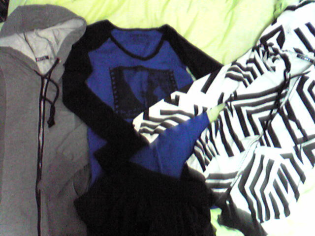 リップの5000えんの福袋だよー4日に静岡109行ってきたんだけどまだあまっててらっきーて買ったー大満足☆引っ越して鏡なくて風呂場の鏡・・・(爆)汚くてスマそこれはTワンピAラインでかわいいvパーカワンピ中にチェックシャツをinこれもラインいい!!幾何学パーカBっぽく着れるかんじ!!ダンス練のときに使えるーバルーンショーパンはくと、ミニバルーンスカートみたいなかんじにv以上です~!!