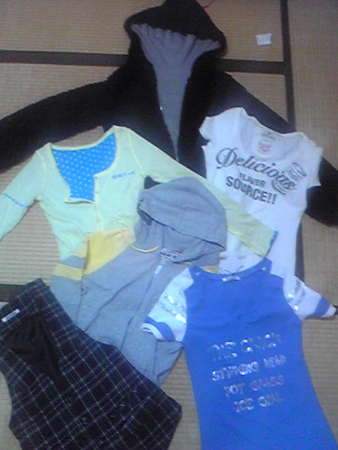 静岡の実家に帰ってます~静岡109行ってきたよースパガ(SPIRAL GIRL)の福袋です★上から、モコモココート!これは全部に入ってるらしいよ!白がよかった~ってショックだったけど、これ、なんとリバーシブルだった!裏はグレーのパーカみたいな☆袖、裾がバルーンでかわいいvv左の黄色カットソーもリバーシブルv裏はくちびる柄v右、白Tは裾長めで超かわいい!!後ろに缶のプリント!!グレーパーカは7部袖で春ぽいかんじ下の青Tはちょっと残念だった・・・なんかヨー〇ドーみたいなデザイン・・・(ワラでチェックのロングベストかわいいけど、この手のチェック柄は苦手・・・着ようと思えば着れるかな・・・去年のほうがよかったなーブログ載ってますv他はGLAD NEWSの福袋買ったんだみなさん楽天でネタバレしてたのとおんなじだったよ!これは全部着れる!これは31日セレショで買った¥1000!妹とオソロでv他買ってない・・・なんか欲しいものがない(笑)