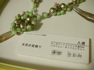 先週の火曜日28日に東京へ “ビーズアートジャパン大賞” の表彰式に日帰りで行ってきました。(^o^)行くか行かないかで悩んでた時に誘ってくれた vivi さんに1日お付き合いしていただいてとっても楽しかったです。v(^o^)v修学旅行以来でほぼ初めての東京。1人で新幹線に乗って行くのはドキドキでした(笑)表彰式用の服は日曜日にスカートを買ってきてました。これにベロアのジャケットで服に合うアクセサリーを作って準備は万端。。。だったのに行く前日がすごく寒くてスカートはやめました結局手持ちのグレーのパンツに黒のハイネックにベロアのジャケット。アクセサリーは家にあったもので。していったのがコチラ。チェコビーズのヴィンテージで1連(ストランド)で購入したものです。ベビーピンクがかわいくて自分には似合わないかもって思ってたけど服に合ってたかと。朝6時40分に家を出て、新大阪8時27分発の新幹線に乗り東京の恵比寿で vivi さんと待ち合わせ。表彰式まで時間があったのでヴィンテージビーズやさんに連れていってもらいました前もって行きたいお店の相談もして準備は万端(笑)行ってきたのは “Marque en Verre” (マーク アン ヴェール)ネットではあまり販売されていないお店なので行ってみたいと思いました。行ってみると大きいお店ではなかったんだけど ビーズがたくさんあってしかも好きな感じで。2軒まわる予定がここ1軒になるぐらい長居してました。買ったビーズはまた後日お披露目しますね。ランチはビーズやさんの近くのお店へ。ハンバーガーやパスタのお店でした私が食べた アボガドバーガーおいしかったんだけど高さがあって、食べても食べても減らずそのうちお腹がいっぱいに。食べ切れずに残りはお持ち帰りにしてもらって帰りの新幹線でおいしくいただきましたそして本来の目的の表彰式へ行く為に 恵比寿から地下鉄で外苑前へ移動。時間が少なくなりつつあったところで道に迷ってました。。。途中で係りの人に会ったので安心してたら手前で道を曲がってしまったようで。かなり歩いてたら後ろからお姉さんに声をかけてもらって道を教えていただきました。東京にも親切な人っているんだなぁって思いました。会場に着いてすぐに入賞作品をバタバタで見てまわり表彰式へ。こんな感じでした。左上を見上げれば巨大モニター、右を見れば階段があって階段上にはミニステージ。受賞された方はモニターに作品が映され、階段をのぼり上で表彰式って感じでした。入選は人数が多かったので2Fの別会場で表彰式でした。1Fは照明がぽわーんって感じの暗さだったんだけど、2Fは白を基調にしたとっても明るい結婚式場でした。アロマもたいてあって和みました。名前を呼ばれたら並び、1人ずつ表彰だったんだけど、名前を呼ばれたのに気づかず小走りするはめにでも?ちゃんと表彰していただきました♪この表彰状とビーズステッチのKITを2ついただきました。すぐに帰ろうと思ってたんだけど作品をもう1度ちゃんと見てまわりました。素晴らしい作品がたくさんありました。これが入選?!ってぐらい素晴らしいものも。今回 “コスチュームジュエリー” とうたっているわりに全然そうではないと感じた作品もありました。私のもそうじゃないと言われればそうなのかもしれないけれど、私はコスチュームジュエリーがものすごく好きでネットで作品を拝見したりしています。審査員の先生方の講評を聞いても “現代のコスチュームジュエリー” とは軽いことや付け心地が重要なのだと。そうなのだとしたらそれはステッチで ということになると思う。ステッチが出来ない私が偉そうに言えることではないんだれどやっぱり疑問が残ってます。。。帰りにそんなことを思いながら会場をあとにしました。これをきっかけに普段は作らないビーズKITをやってみようかと思ってます。ちょっと勉強してみようかなって。もちろん今のビーズに対する気持ちは変わらないし、作るものも変わらない。好きなものは変わらない。勉強してみようと思えるのは気持ちに余裕ができたからかもしれません。表彰式も無事終わったしね。表彰式へは行くか悩んだけど行ってよかったと思ってます。とってもいい記念になりました。自分の作ったものが飾られるというのは感無量でした最後に vivi さんにお世話になり感謝感激です\(^o^)/ ありがとうございました。またヴィンテージビーズやさんに一緒に行けるといいな