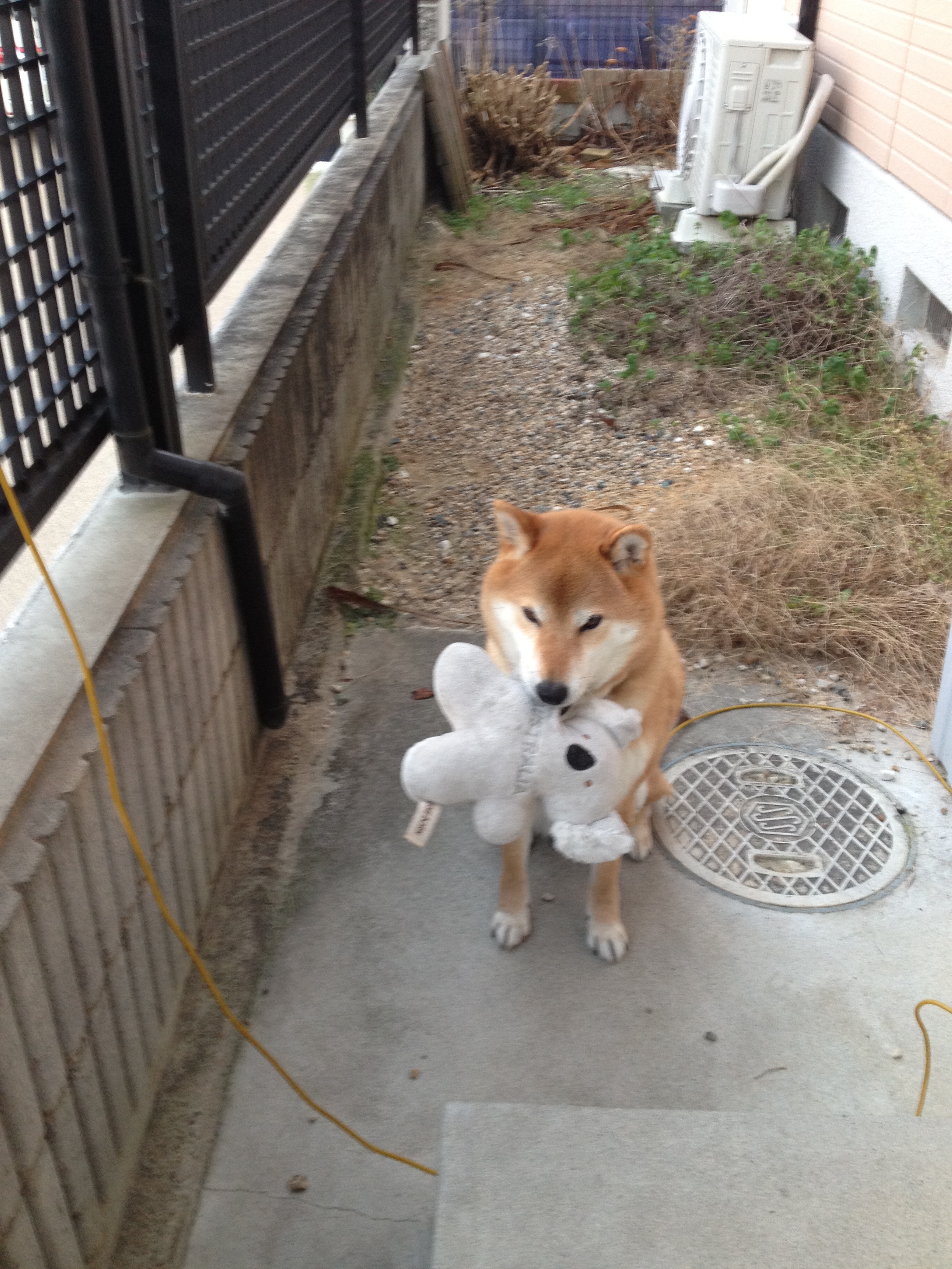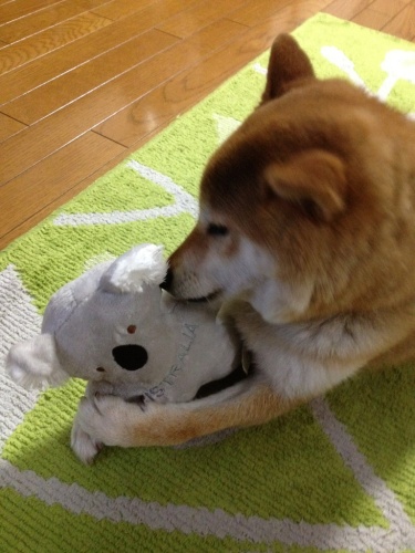 最近室内犬のウランに新しいお友達ができました。 2012_01110026 posted by (C)ウラン母の母 じゃじゃ丸君です。年代物です(#^.^#) 興奮していきなり鼻をもいでしまいました・・・・・