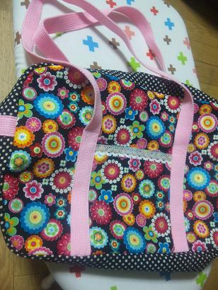 娘がスクールバッグが欲しいと言うので、試しに作ってみた。かわゆくできたけど、派手ですな…
