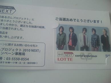 私が応援していたアーチストさんは残念ながらファイナルには行けなかったので、がっかりしていたのですが…手元に届きました。懸賞とかくじ引きとかが当たることに縁遠い私なので、届いたことにかなり驚きました。もしかしたら当選がメインじゃなくて応援がメインだったからかな。結果は残念だったけど、これからも応援していこうと思います。