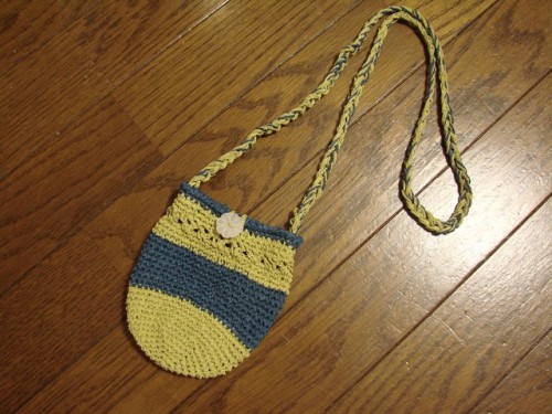 携帯と鍵だけが入るポシェットが欲しくなり、編んでみましたちっちゃいですが、と鍵だけ…