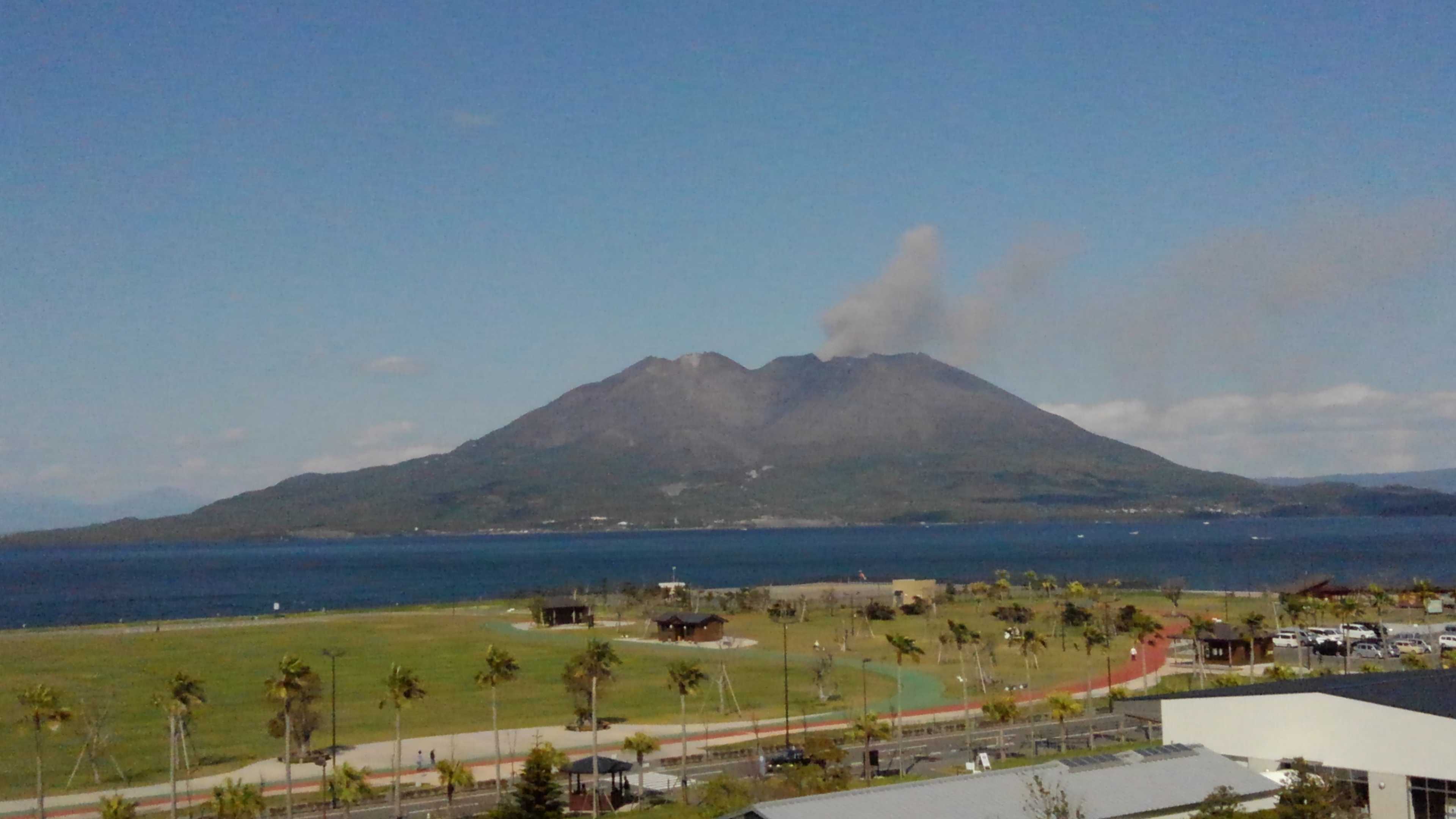 港へ近付いて行くと桜島が現れて、噴煙を上げている姿はとても美しく