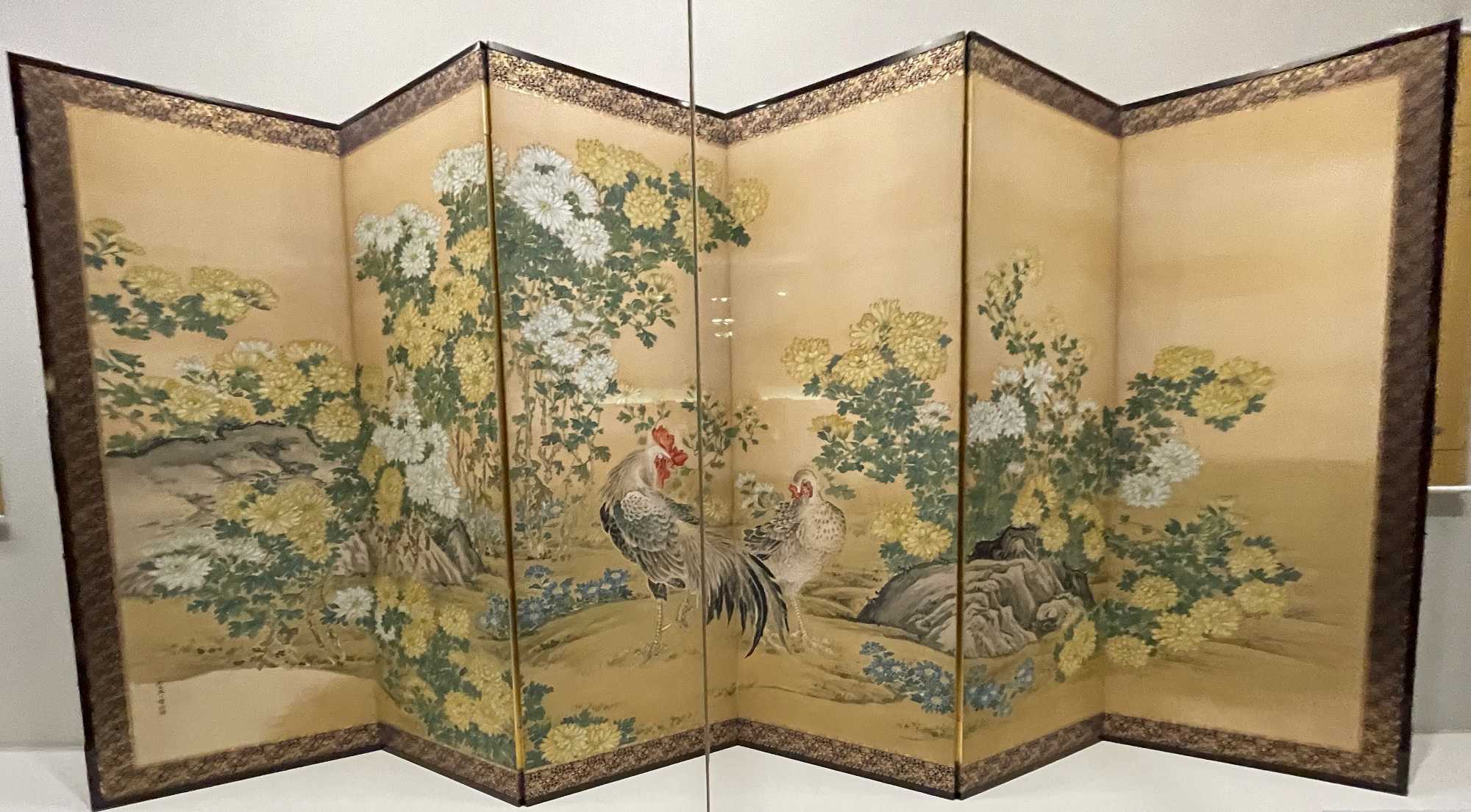 「菊鶏図屏風」野口幽谷(1895年)  万博等出品作