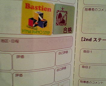 小さな生徒ちゃんのピアノステップに付き添いましたステップって言うのは、検定とか試験ではなくて自分の演奏を聴いてもらい、アドバイザーの先生から、「今何が足りないか、これから何をしたらいいか?」など参考になるアドバイスがいただけますよ今回は、いつも使っているバスティンの曲歓迎!!という初めての「バスティンステップ」たくさんのバスティン先生の曲がならんでいました導入3で2人と基礎4で1人参加しましたが、それぞれ自分の色を出していたようですまだまだ、表現する事は苦手で、技術も、なめらかな半音階が課題…などたくさんあるけどたくさん書いて頂いたアドバイスに、子ども達より生徒のお母さん達の方が喜んでいました私も、反省する事だらけでしたが、これからの課題も見つかりとても、充実したひとときでした演奏後は、音符のビンゴまであって、大騒ぎ!!参加者には、もれなく、プレゼントしただきましたよ。パスポートには、いつもの合格シールのほかに今回のみ「バスティン」シールが貼られましたまた、来年も開催するらしいですよ次回もビンゴまたやるのかな??