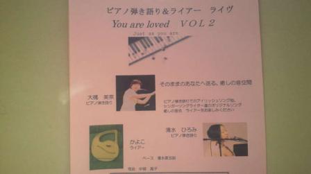 http://plaza.rakuten.co.jp/usamelody/diary/201010060000/ さて、ひと月前に上記ご案内した、ピアノ弾き語りあと3日後になりました大きな会場での小さなライブですが(笑)バリアフリーの公共施設なので、お気楽においでください 当日は、私の街は「ふるさとフェスタ」というイベントで駅前からなにから、お神輿までとても大賑わいの予定です その片隅ではありますが、駅に隣接した施設になりますので普段、病院、施設での癒しの曲プラス、オリジナルも加えてお待ちしていますピアノ弾き語り&ライアーライヴ You are loved VOL2ピアノ弾き語り&ライアーライヴ You are loved VOL2 just as you are ~そのままの あなたへ~ 時 2010年 11月6日(土) 時間 14:00 (開場 13:30) 場所 にいざほっとぷらざ 4階 (東武東上線 志木駅 南口)改札を出てすぐ左 ¥500 (新座おやこ劇場協力によるワンコインライブです) (cookies and Coffe) 出演 大橋 美奈 (ピアノ&ピアノ弾き語り) 清水ひろみ (ピアノ弾き語り)かよこ(ライアー) 清水 長五郎(コントラバス)高樋裕実(司会) 予定曲目 第1部オープニングムーンライトセレナーデ(mina&chogoro) ピアノ弾き語り(mina)アニーローリー、ロンドンデリーの歌、星に願いを ライアーソロ(kayoko)古典からロマンそしてポップスな曲までおだやかにお届けいたします ~カフェタイム~第2部オープニングリベルタンゴ(mina&chogoro)オリジナルソング(hiromi) 都内ライブハウスで活動中。清水ひろみのオリジナル世界を堪能くださいしっとりとした気分が味わえます オリジナルソング(mina)数少ないオリジナル今年の新作は、「たまねぎなあなた」「やきそばブルース」の2曲を歌います。 大いに笑ってください。きっと心に残るフレーズと出会えることでしょう エンディングは当日のお楽しみです ネットでのお問い合わせはこちら から では、楽しいひとときになると嬉しいです お茶と焼き菓子は おやこ劇場の友人有志メンバーのお手伝いでおもてなしいたしますよ~