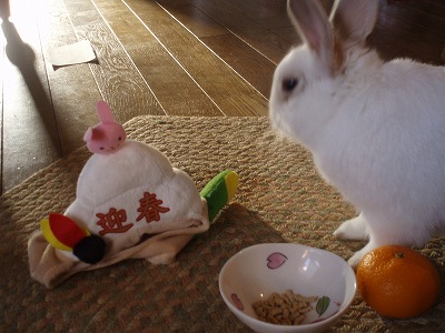 あけましておめでとうございます 昨年中は大変お世話になりました 今年もどうぞよろしくお願いいたします 昨年末の発表会を終えて、やっと行動が復帰できていました 年を取ると体力の回復が遅くて困ります でも今年は、 うさぎ年がやってきました。 白いうさぎは幸福をもたらすそうですので期待したいです 我が家のポコちゃん朝から大騒ぎしてご飯をねだっております 自分の年がきたの知っているのかな?? まずは、新年のご挨拶です。うちのうさぎボス、頭に被り物して登場~のハズでしたが、拒否されましたなんだよコレ!って思っているポコくん(9歳)です。今年の秋には10歳になるので、健康に気を付けて過ごしたいです長く一緒にいるので、大体の表情と、言葉が分かります。うさメロと一緒にテレビを見たり、PCをする足元にいたり、3うさの中では一番甘えん坊放し飼いにしていつも一緒に過ごしています寝てると、髪を引っ張っていたずらしま~~す。 頭には被らないけど、側に置いていただきます~皆様も健康で良い年になりますように~~~ 以下、里親でお迎えしたうさぎ達ですうさぎその2。コロです 幼稚園出身2歳。臆病な甘えん坊くん。ご飯を上げると、手をなめてくれる感謝の心がいつもかわいいうさぎその3小学校出身。ろみです もうすぐ2歳の姫です 。行動が大胆でアクロバットな動きをしますが、コロちゃんと仲良くしてくれます。お掃除好きで、牧草の散らかったお部屋をお散歩しながら、食べてきれいにしてくれますとても助かります昨年は、里親募集お手伝いしつつ、ひょんな事から、我が家にやってきたろみちゃんをお迎えし、3ぴょんになりましたが とっても楽しく過ごしています。話かけるたびに、色々な表情を見せてくれますが、これも、毎日のお世話あっての信頼関係ができてきたのかなと思います人間も動物も、信頼関係を築くのが一番大変で大切な事かと思います うさぎ年の今年、各地ではうさぎさんの話題が多いと思います うさぎを飼ってみようと思う方も増えるしょうどうか、心から信頼して、毎日を大切にお世話してください動物は人を裏切りません。 人はその信頼寄り添い最期まで、一緒に暮らしてあげるのが、ペットとしてうさぎさんをお迎えした人の仕事です どうかステキな1年になりますように 今年も、うさぎ&うさメロをよろしくお願いします 今年は、どんな歌をうたおうかな??色々な人との出逢い、ご縁、そして、行動する力に期待します