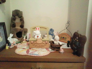 お正月も終わりましたね そろそろ、仕事がまた始まります今日の夕方から、私はレッスン開始です。今年の冬はいつもと違って地味~に過ごしていました(ホラ、受験生がいるから。。来年も再チャレの可能性もあるけど…)毎日、断舎離をしておりました。お片づけ~。。 で新しく整えた入り口(えっ?整ったつもり?と思われそう) レッスン室の玄関新年のお仕度できてますよ。招き猫ならぬ、まねき兎ですレッスン室の入り口の棚には、干支のプーさん、お正月のお花もまだ元気今年はうさぎ(何度もしつこくてゴメンです)干支プーさんは、5年前から毎年集めてて、やっとこれだけ揃ったの~あと7年ディズニーストアー年末毎年通います教室の玄関を入ったところにろみちゃんをお迎えしました。ろみちゃんは学校飼育から来た時、目が悪く治療していたので離れた所で様子を見ていました。今は毛もキレイになり、目も悪かったのが今では気がつかないくらいになったので、人懐こいろみちゃんなので、レッスン室前の明るい所に場所変えです。「よろしく生徒さん達!!」コロちゃんは控えめに後ろです。 という事で、レッスン開始ですポコちゃんは、変わらずプライベートなお部屋で、ご主人様状態しております 干支のニュースも、月半ばには静かになるでしょうしうさぎブームと言っても、お世話は地味にマイペースでやっていく事になるでしょう はい では、お仕事始めましょう でも、まだ、実はレッスン室の中は、片付いてないのです入り口だけ、整えても、中身が整っていない、相変わらずのうさメロですこちらも、断舎離しなくちゃそれ~!急げ~! 仕事の時間まで、まだまだ、やることがいっぱいだぁ