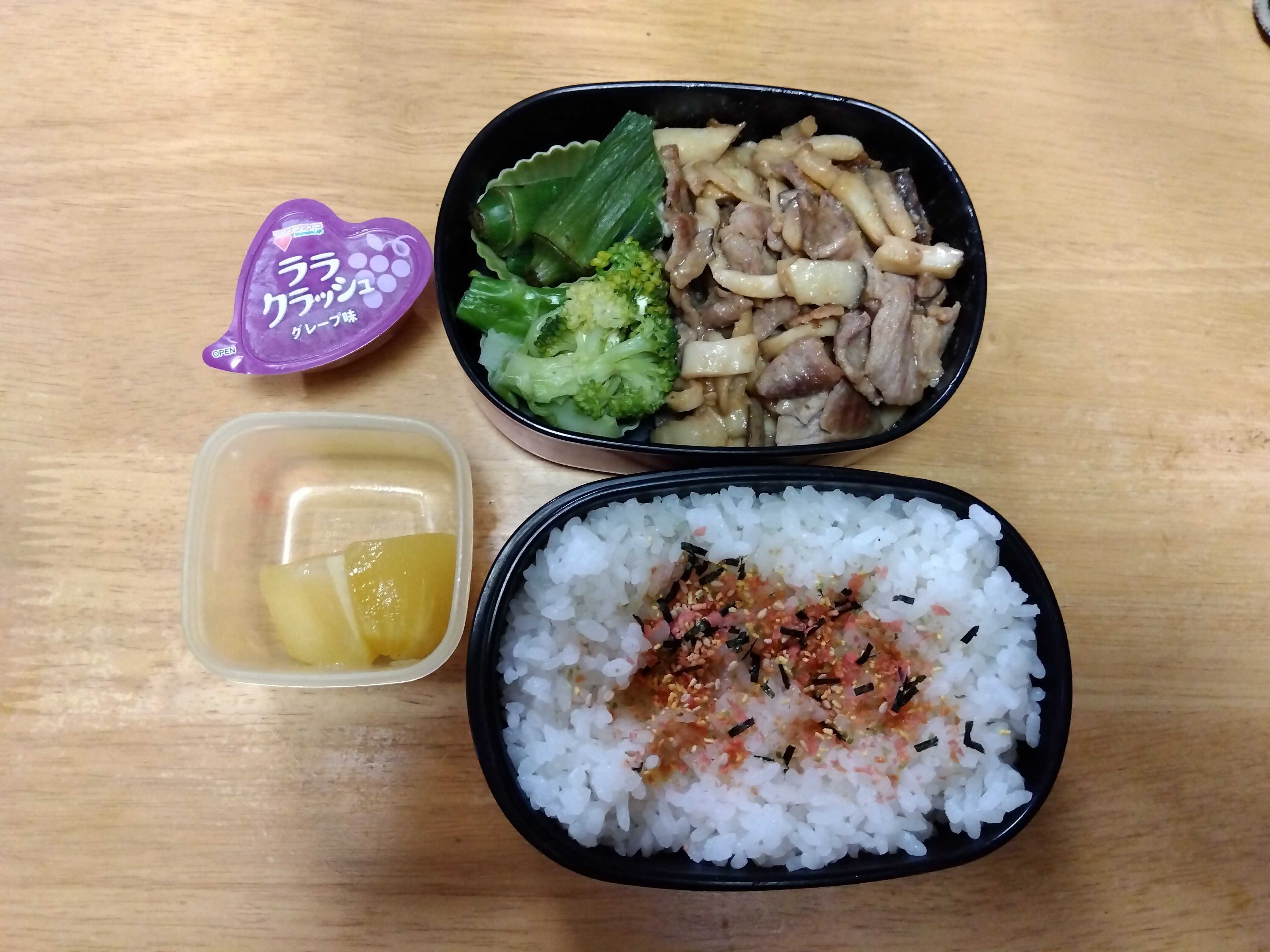 長女・長男2人分でした。・混ぜこみわかめごはん・たまごやき・豚肉とエリンギの味噌しょうがいため・かぼちゃの煮物・ブロッコリー・ほうれん草ととうもろこしとベーコンのバター炒め・シャインマスカット・ララクラッシュゼリー長女は偏食なのですがきのこ全般も苦手なのだそうで困りました。NGの食材、メニューが多いのでワンパターンのおかずになりがちですが飽きると箸がすすまなくなります。。。